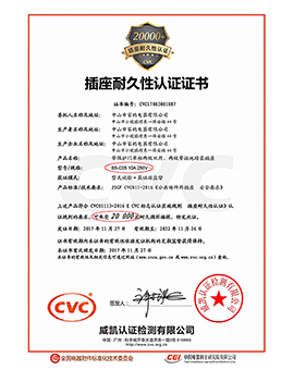 曾經獲得V8-B5插座耐久性認證證書