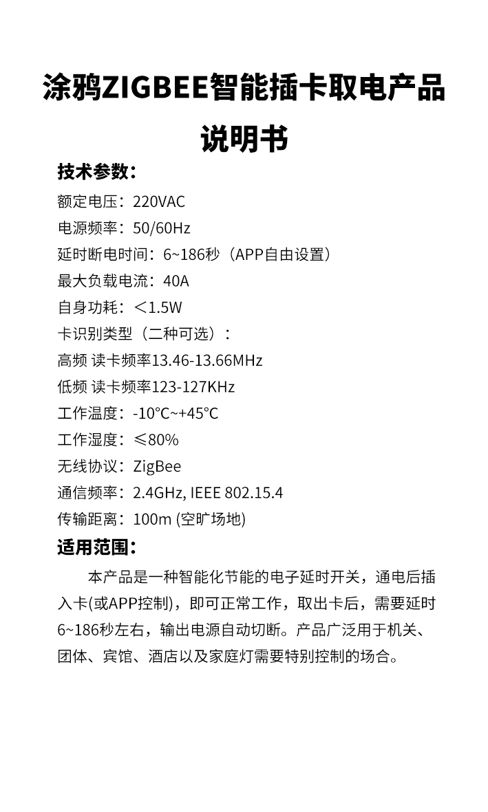 涂鴉Zigbee智能插卡取電產(chǎn)品