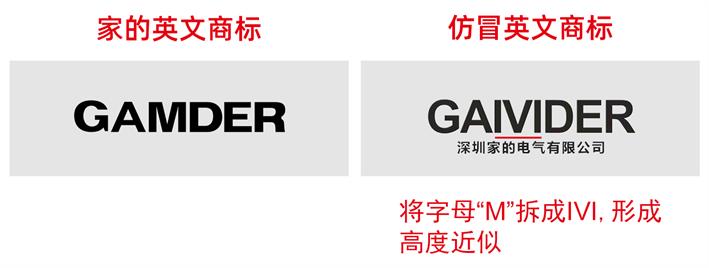 據家的開關合作客戶反映,消費者疑似購買到打家的開關品牌“擦邊球”的產品。家的公司經過詳細調查,發現該現象屬實。“家的開關品牌英文商標為‘GAMDER’,仿冒商標名為‘GAIVIDER’,差別僅在于將字母‘M’拆分成‘IVI’,產品的外包裝還印有“某某家的電氣有限公司’。