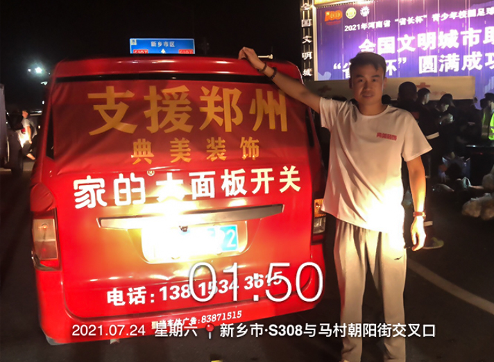 水災無情,人有情。河南暴雨災難牽動社會各界,人們紛紛捐款捐物,支援防汛抗災前線以及災后重建工作。家的公司也十分關切河南災情。7月23日,家的開關品牌合作伙伴——江蘇省徐州精忠電氣設備有限公司岳總,星夜馳援河南。