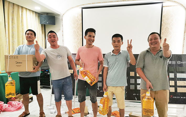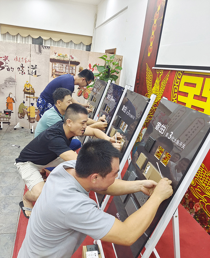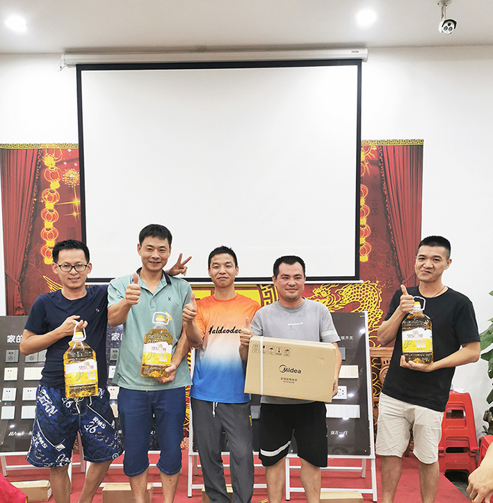 在品嘗美食之后,活動環(huán)節(jié)到開關(guān)安裝比賽。水電工師傅們踴躍參加,使出各自的看家本領(lǐng)。比賽選手根據(jù)安裝效率高低,依次獲得獎品。獎品包括智能電飯鍋、食用油等。通過競技比賽,水電工師傅交流經(jīng)驗,共同進步。