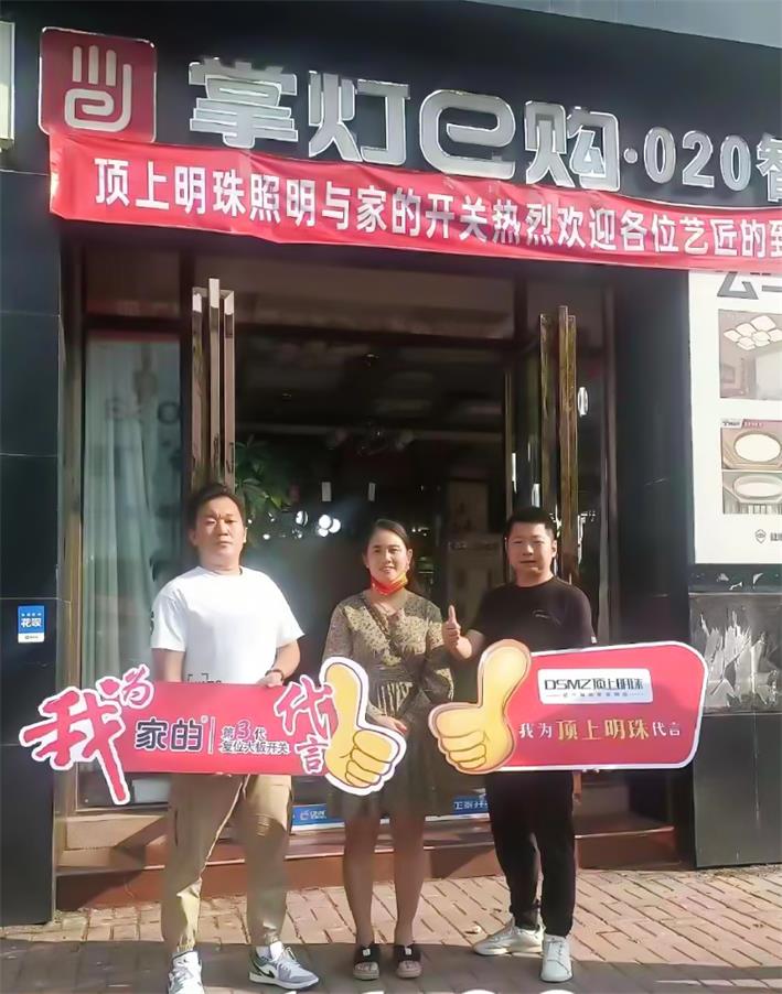 會議主要由森澤國際建材城國輝燈飾盧總、家的工廠龐經理及竣榮公司張經理組織。藝匠師傅們按時到實體門店簽到,為家的第3代大板開關代言,成為國輝燈飾城市服務合伙人。