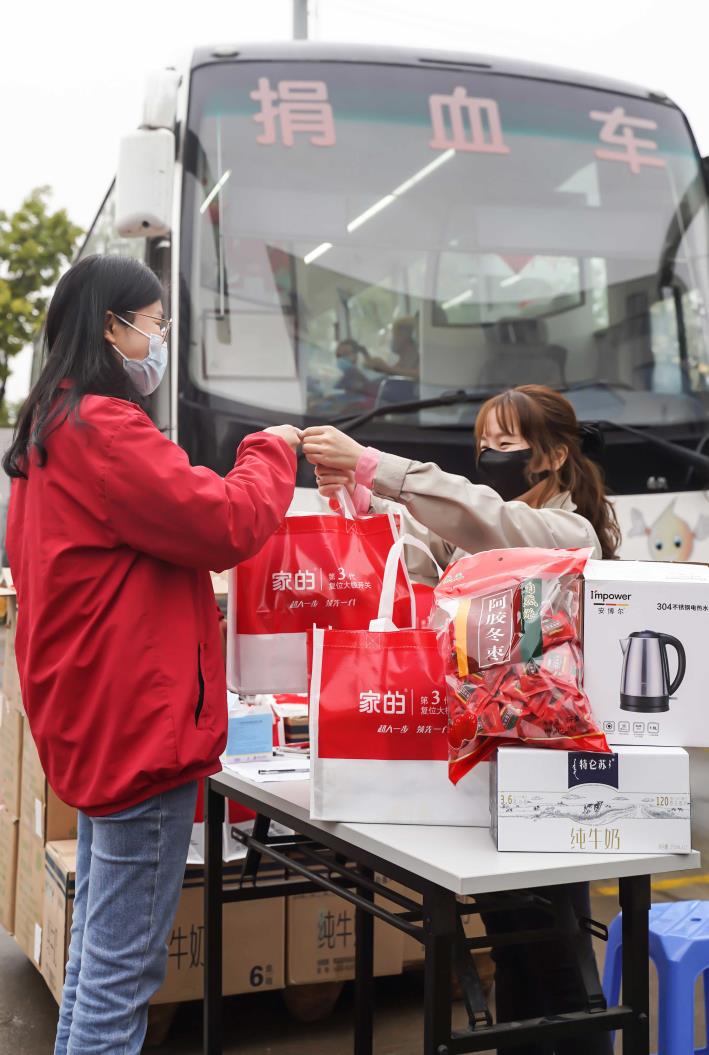 家的公司響應號召,積極履行企業社會責任,組織員工們無償獻血,支持社會公益事業。家的公司廠長、各部門主管等也都在獻血隊列。大家佩戴口罩,有序地排隊填寫資料、量血壓、核準血型,做好獻血前的各項準備工作。體檢合格者依次登上獻血車,挽起袖子,捐獻熱血。