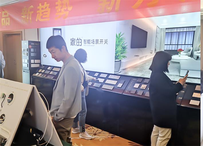 接著,家的一部銷售總監(jiān)李曉耀頒發(fā)“陜西省2022年十佳優(yōu)秀經(jīng)銷商”獎牌。這些榮譽鼓舞著大家再接再厲,再創(chuàng)輝煌。李曉耀分享了多年來家的經(jīng)營心得,“新趨勢,新方法”讓大家受益匪淺。他還重點講解家的核心系列產(chǎn)品——超級點開關(guān),以及家的品牌未來布局的方向。超級點開關(guān)擁有純平復位的美,不易積塵,手感佳,工藝高超等優(yōu)勢,得到客戶們的賞識。