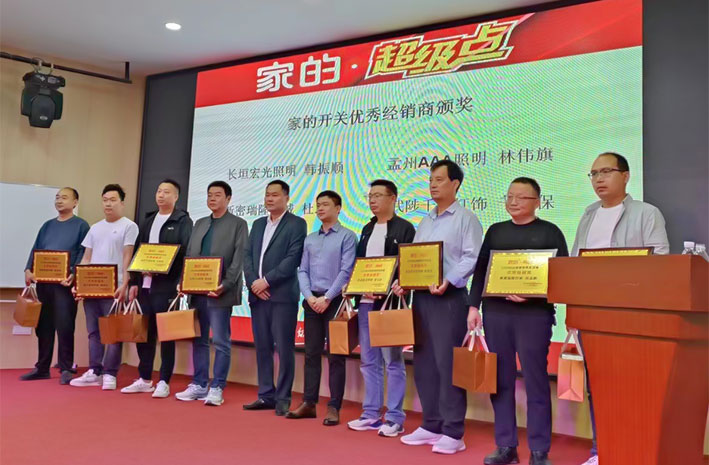 接下來,家的中西部銷售總監(jiān)李曉耀發(fā)表講話。他從中山市家的電器有限公司的發(fā)展歷史,研發(fā)、生產(chǎn)、檢測的實(shí)力,以及家的開關(guān)品牌的知名度、影響力等進(jìn)行了全方位的講解。他重點(diǎn)講解家的公司現(xiàn)階段主推的核心差異化品類——超級點(diǎn)。他分析超級點(diǎn)開關(guān)的競爭優(yōu)勢和賣點(diǎn)等。特別是近期的新品——V20膚感白超級點(diǎn)受市場熱捧,供不應(yīng)求,見證了超級點(diǎn)市場競爭力強(qiáng)的優(yōu)勢。他還介紹了家的魔方旋轉(zhuǎn)柜、智能燈箱等獨(dú)特的終端展示方式。他的講話內(nèi)容,增強(qiáng)了經(jīng)銷商銷售家的產(chǎn)品的信心!