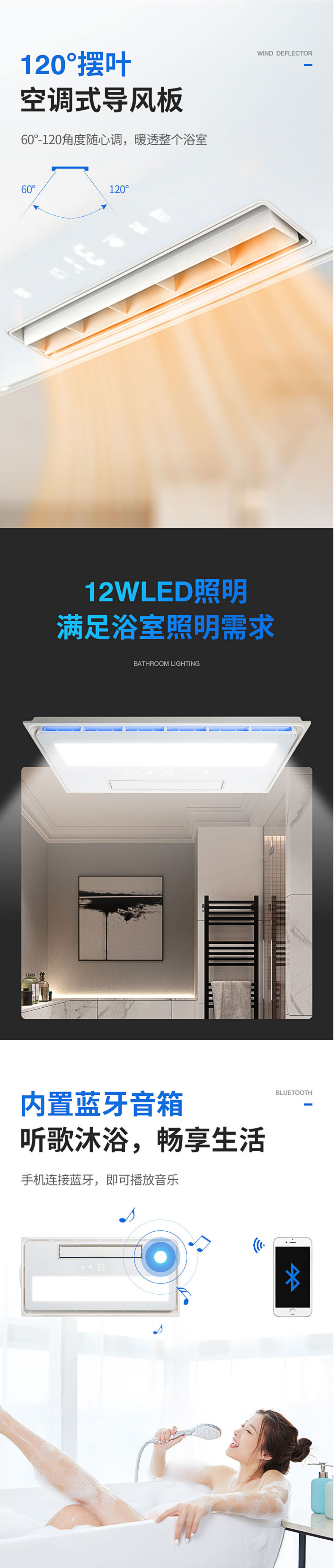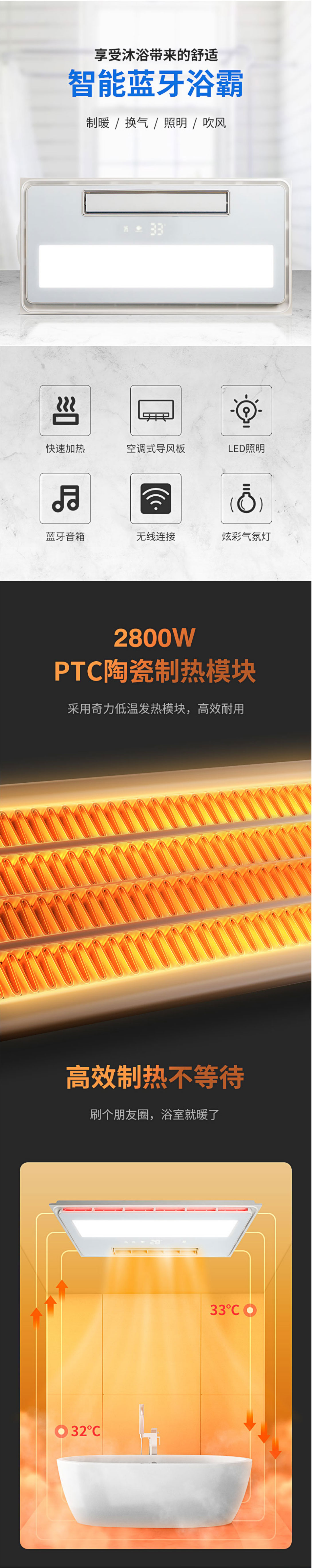 功能模塊:換氣+風暖+LED照明+智顯+氣氛燈+無線遙控+藍牙音箱